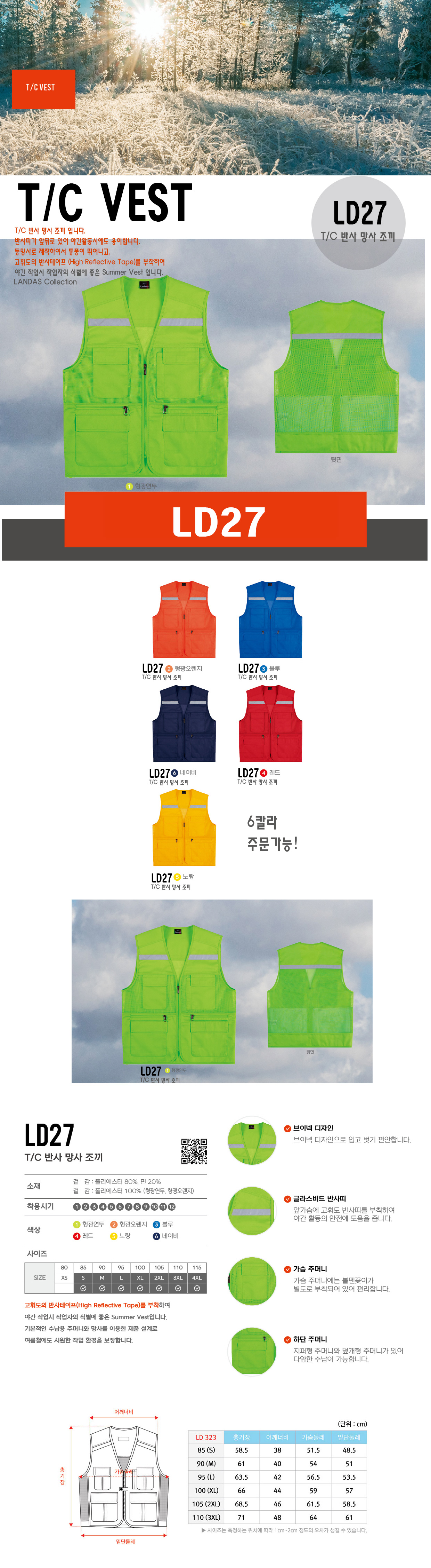 미미마크 LD27 T/C반사 망사조끼/티씨반사망사조끼/단체조끼 로고제작가능