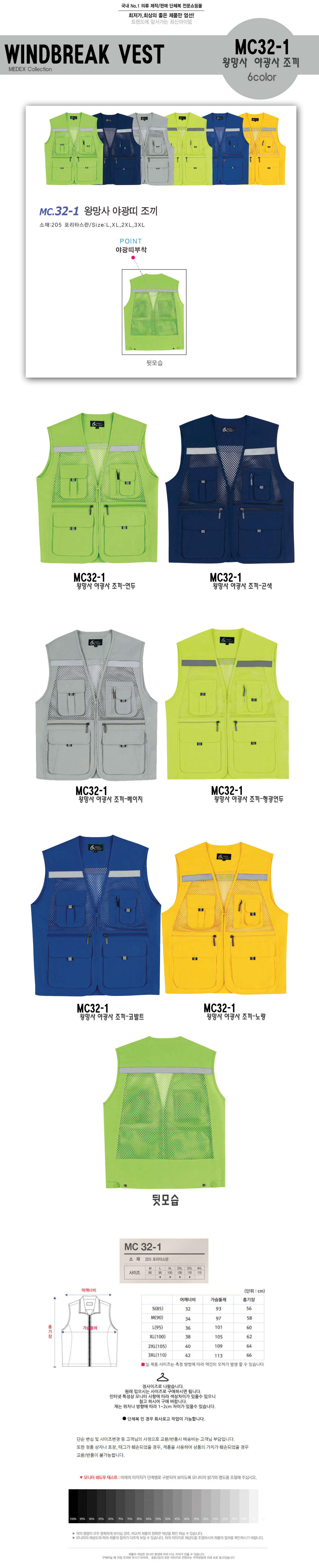 MC32-1 왕망사야광사조끼/단체복조끼/로고상담가능 미미마크