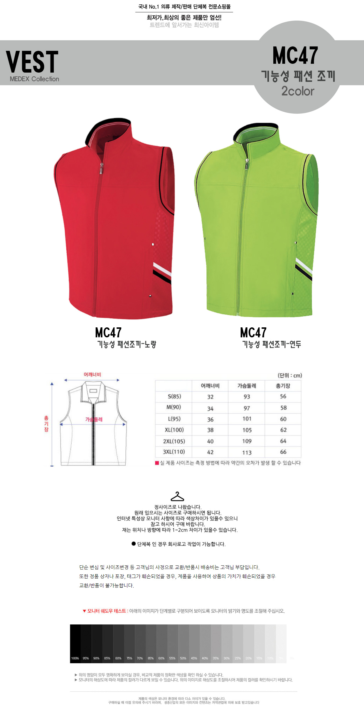 MC47 기능성패션조끼/단체로고상담 미미마크