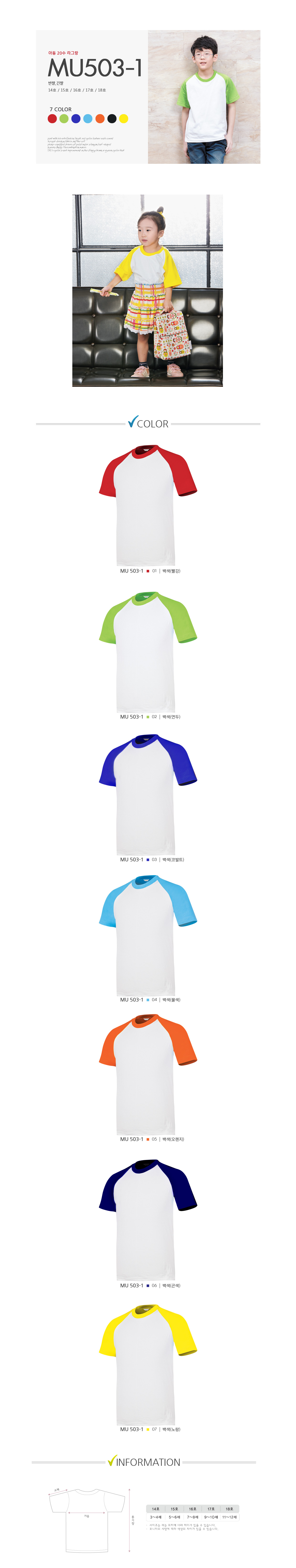 MU-503-1 아동용20수나그랑티셔츠[반팔/긴팔] 면티자수 나염프린팅 전사 실리콘가능 미미마크