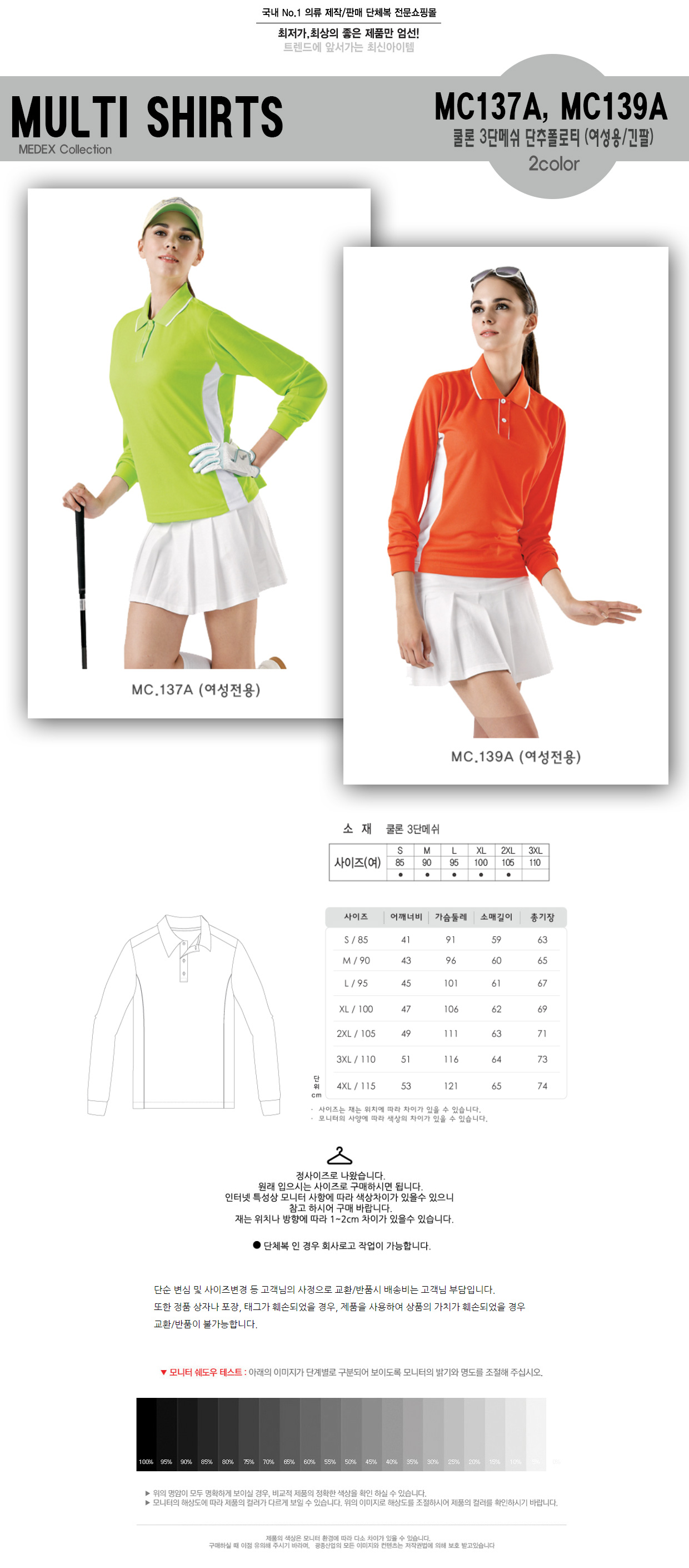 MC137, MC139 쿨론3단메쉬단추폴로티(여성전용 긴팔/반팔-1000원할인) 미미마크
