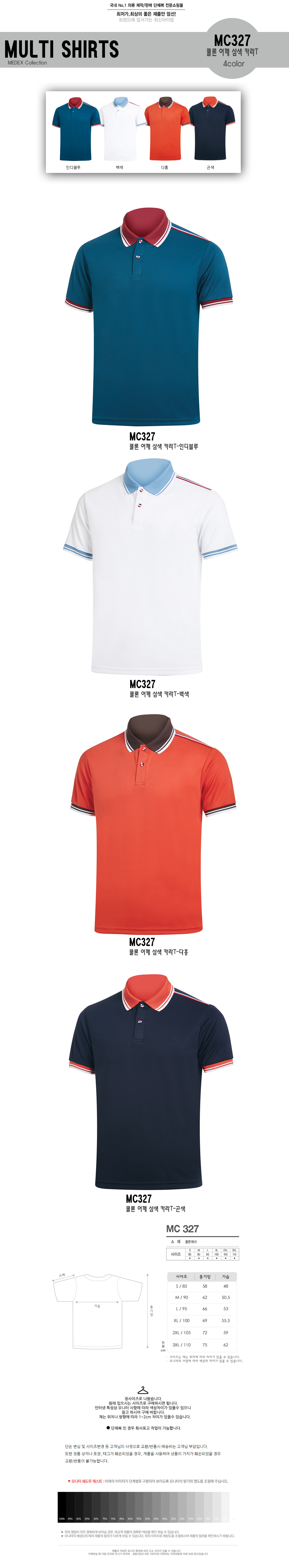 MC327 쿨론어깨삼색카라티(반팔) 로고상담 미미마크