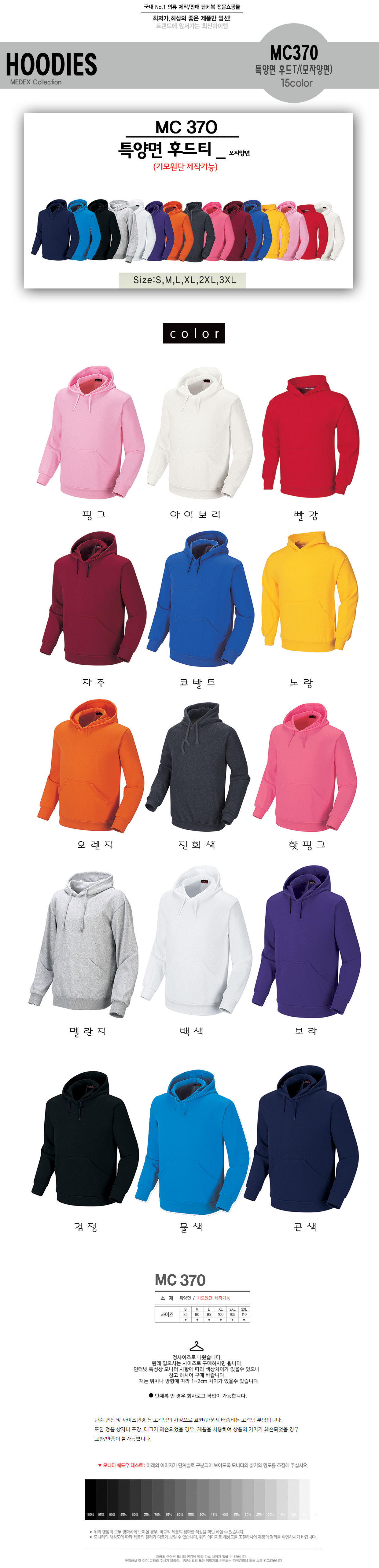 MC370 특양면후드티(모자양면) 기모추가가능 /로고상담 미미마크
