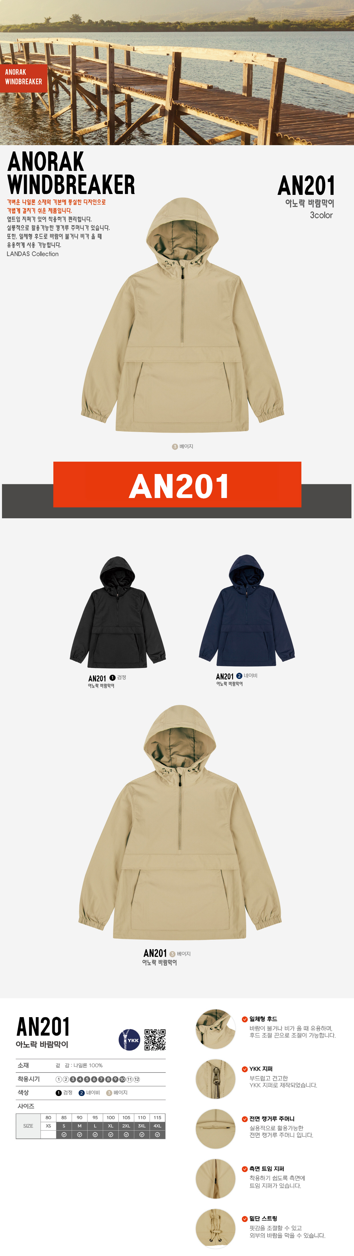 미미마크 AN201 아노락바람막이/후드점퍼/자켓/자수 전사가능