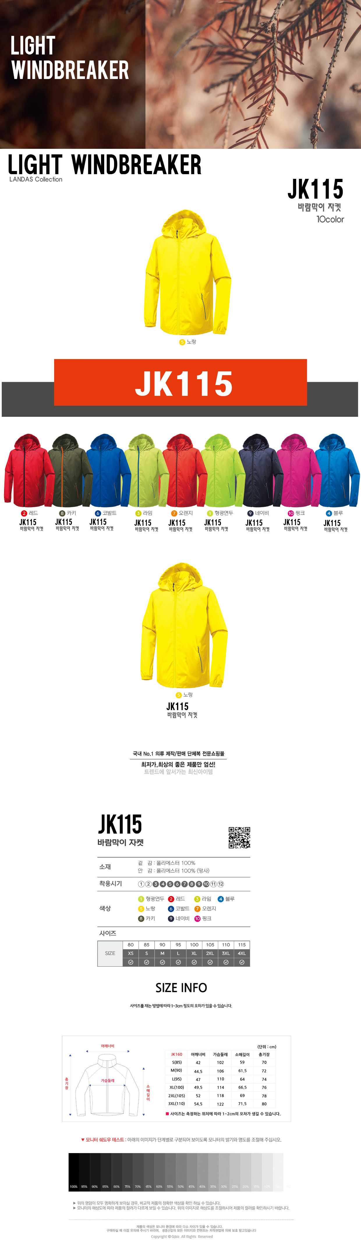 미미마크 JK115 바람막이자켓/ 로고가능 전화상담/자수 나염 전사 와펜