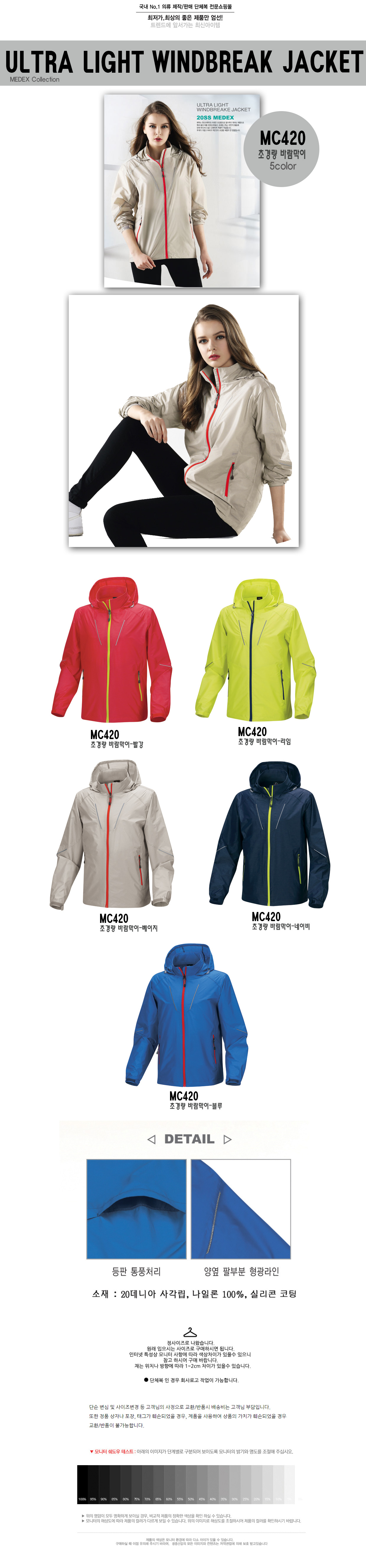 MC420 초경량바람막이자켓/경량자켓/로고상담 미미마크