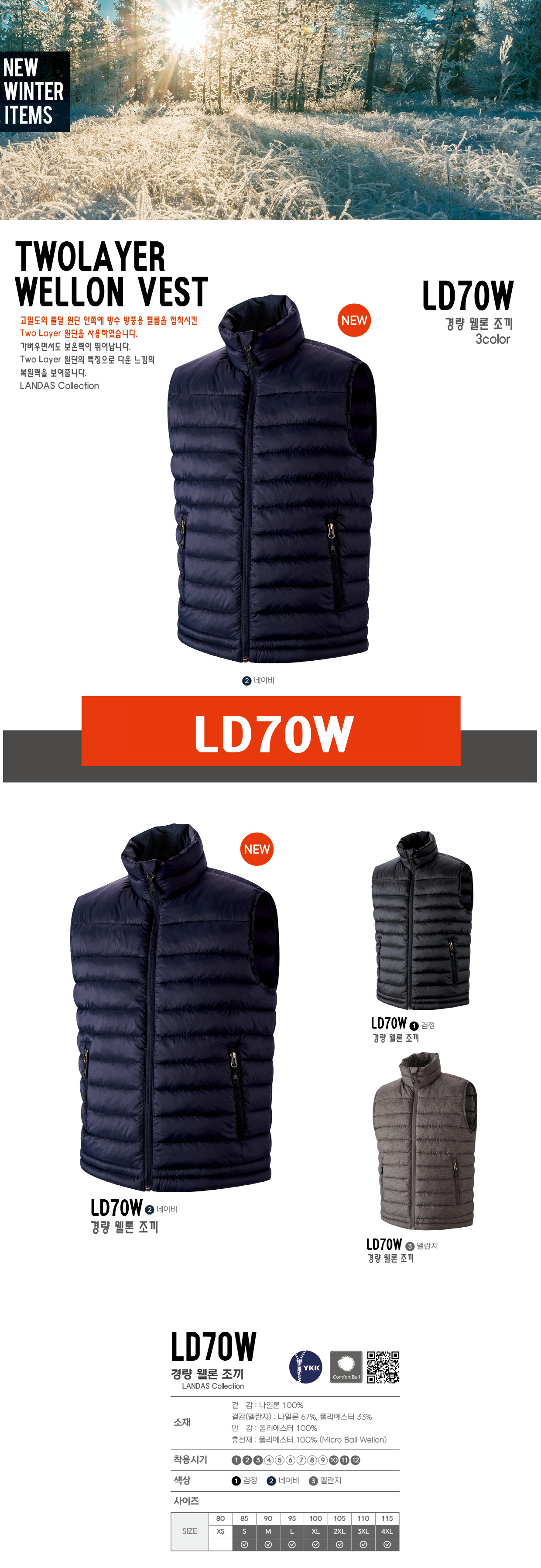 미미마크 LD70W 경량웰론조끼 / 패딩조끼/패딩내피/자수가능/로고가능