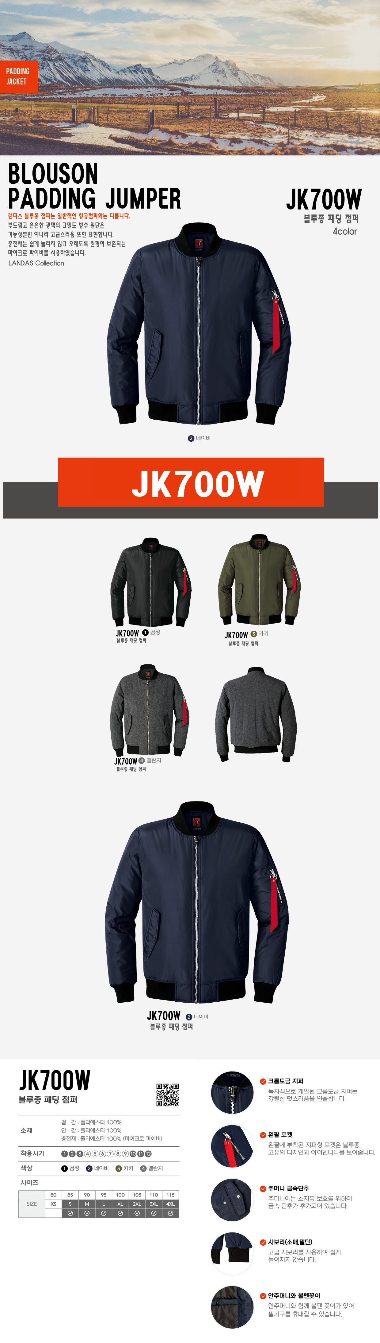 미미마크 JK700W 블루종패딩점퍼/가벼운자켓/자수전사가능