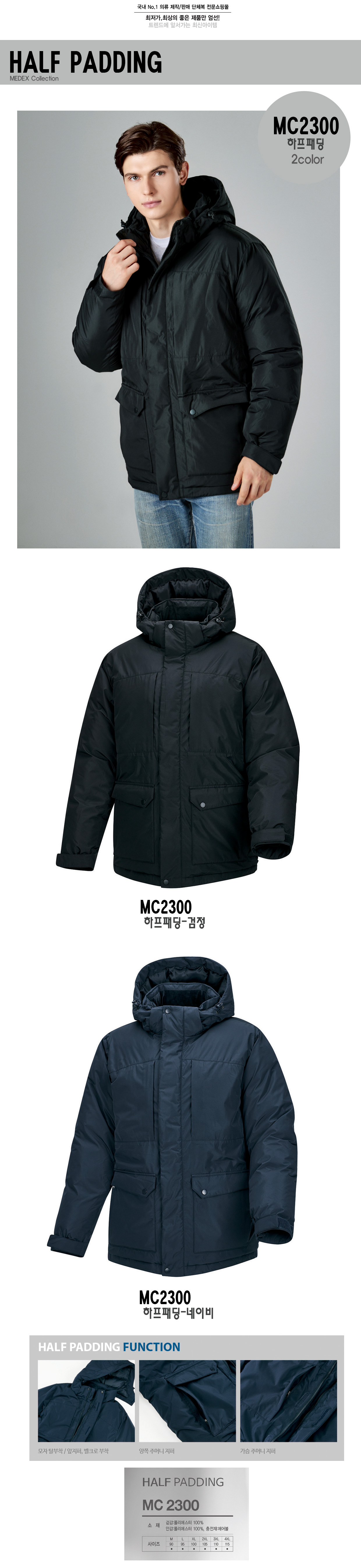 MC2300 하포패딩/HALF PADDING/단체복잠바/단체복패딩점퍼 미미마크