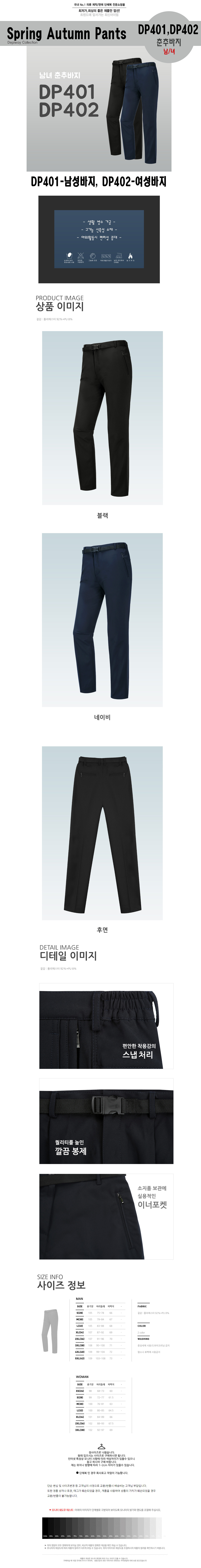 DP401, DP402 남녀 춘추바지/근무복바지/회사원바지/ 미미마크