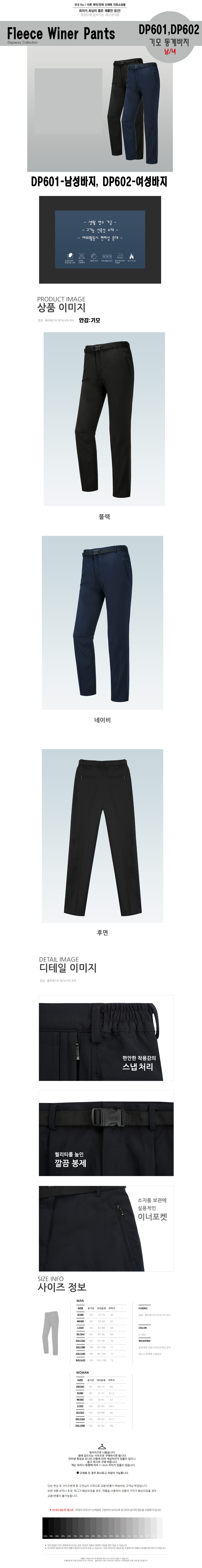 DP601, DP602 남녀 기모동계바지/겨울용바지/근무복바지/미미마크