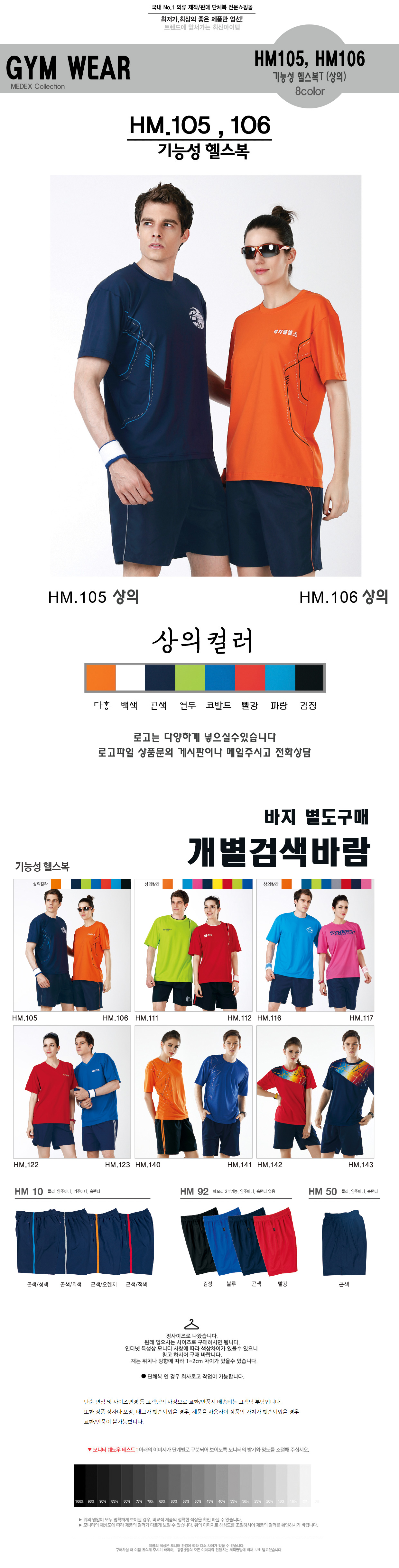 HM105,HM106 기능성헬스복(상의) /나염 인쇄 전사 상담 미미마크