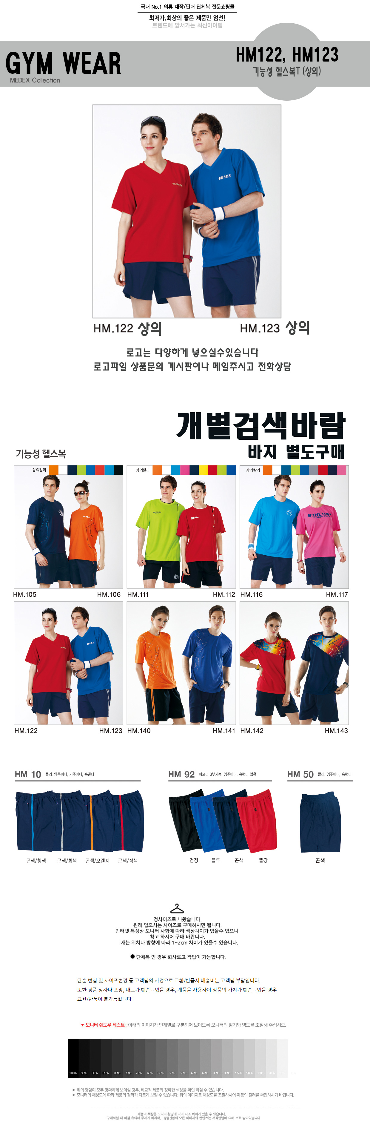 HM122, HM123 기능성헬스복(상의) 각종로고상담 미미마크