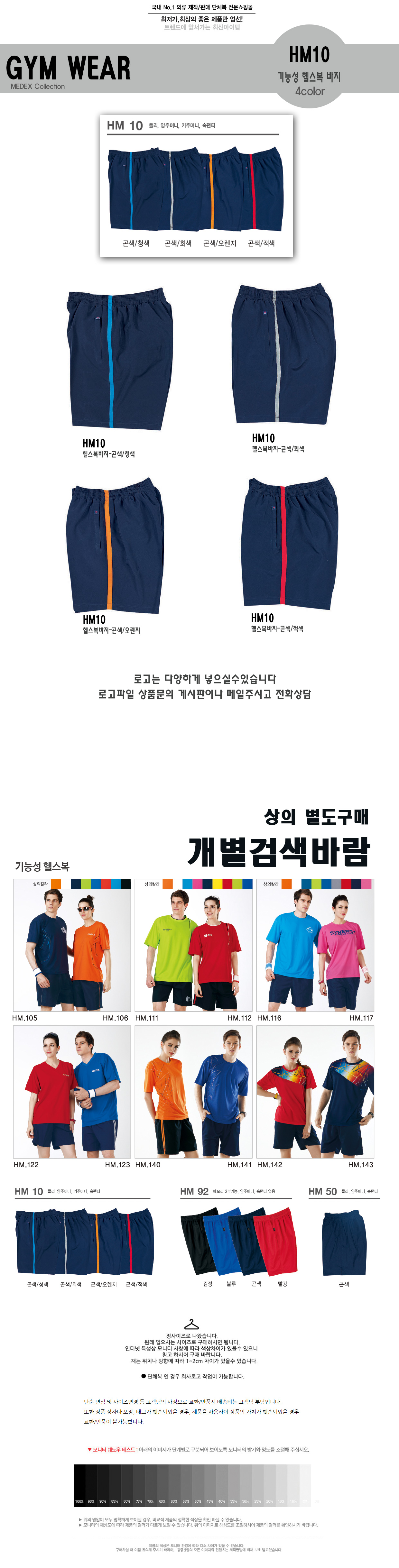 HM10 헬스복반바지/폴리일선바지(키주머니/속바지) / 로고상담 미미마크