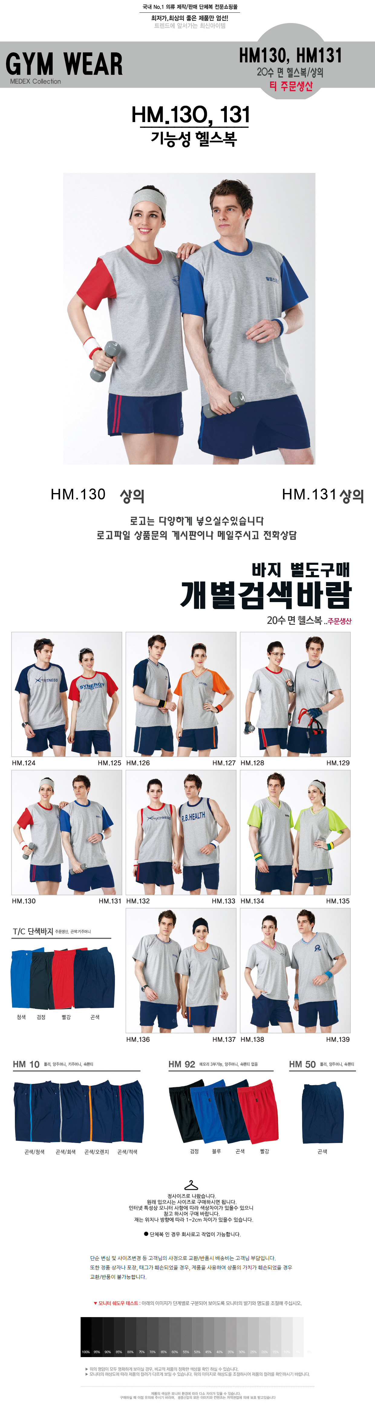 HM130, HM131 20수면헬스복(상의) 주문생산 로고상담 미미마크