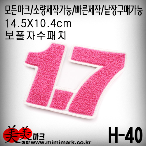 H-40 /보풀자수숫자패치/일점칠패치 (대형/핑크) 패치와펜 ,3D패치,전사패치,고무패치,실리콘패치,벨크로패치제작 무료디자인제공, 패치제작 와펜제작 자수패치 벨크로패치제작 미미마크
