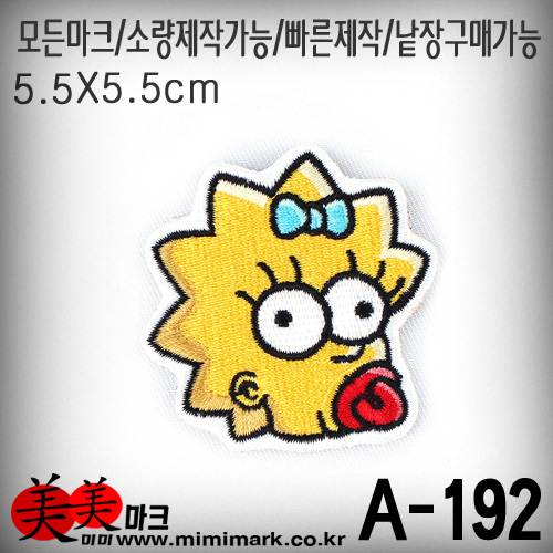 A-192 심슨아기패치 패치와펜 ,3D패치,전사패치,고무패치,실리콘패치와펜,벨크로패치제작 패치와펜잘만드는집 컴퓨터자수 잘하는집 자수펀칭무료디자인제공, 패치제작 와펜제작 자수패치 홀로그램패치출시 브랜드패치제작 고궐리티패치제작 자수패치업체 자수공장 패치공장 넘버원 미미마크 패치제작시 전문디자이너 무료디자인시안 상담받으세요 제작빠른상담 전화주세요