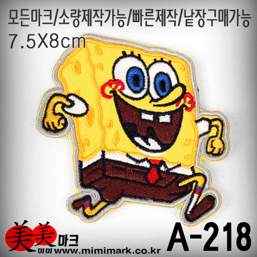 A-218 스폰지밥패치 패치와펜 ,3D패치,전사패치,고무패치,실리콘패치와펜,벨크로패치제작 패치와펜잘만드는집 컴퓨터자수 잘하는집 자수펀칭무료디자인제공, 패치제작 와펜제작 자수패치 홀로그램패치출시 브랜드패치제작 고궐리티패치제작 자수패치업체 자수공장 패치공장 넘버원 미미마크 패치제작시 전문디자이너 무료디자인시안 상담받으세요 제작빠른상담 전화주세요
