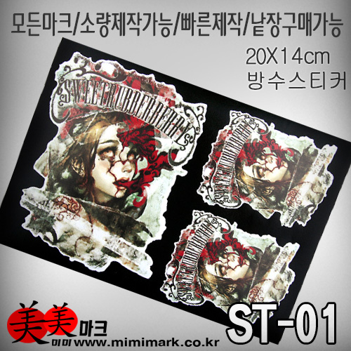 ST-01 방수용스티커셋트/유리용스티커/일반방수용스티커제작 3D스티커 쓰리디스티커제작 홀로그램스티커제작 인테리어스티커제작 열스티커제작 의류용스티커 고무스티커 차량용스티커제작 바이크스티커제작 라벨스티커제작 미미마크