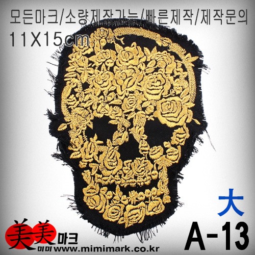 A-13 /해골금사패치 /대형패치 패치와펜 ,3D패치,전사패치,고무패치,실리콘패치,벨크로패치제작 무료디자인제공, 패치제작 와펜제작 자수패치 벨크로패치제작 미미마크