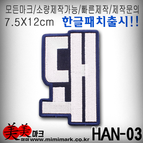 HAN-03 한글패치/돼-컴퓨터자수 잘하는집 패치와펜의선두!!! ,3D패치,전사패치,고무패치출시,실리콘패치출시,벨크로패치제작 자수펀칭무료디자인제공, 홀로그램패치출시 브랜드패치제작 패치제작 와펜제작 자수패치 고궐리티 합리적가격 자수공장 패치공장 넘버원 미미마크 패치제작시 전문디자이너 상담받으세요 제작빠른상담 전화주세요