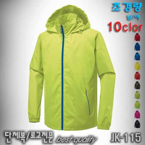 JK-115 /초경량바람막이자켓 잠바자수 나염프린팅 열전사 실리콘로고가능 미미마크