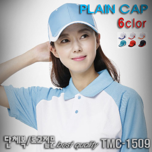 TMC-1509 /바이져 배색무지캡 모자자수 나염프린팅 전사 열스티커가능 미미마크 마크사 자수사