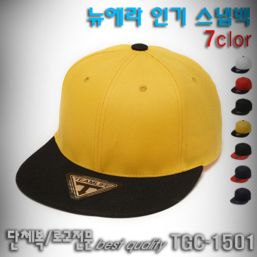 TGC-1501 / 뉴에라 기본배색무지캡 (스냅백) 모자자수 나염프린팅 전사 열스티커가능 미미마크 마크사 자수사