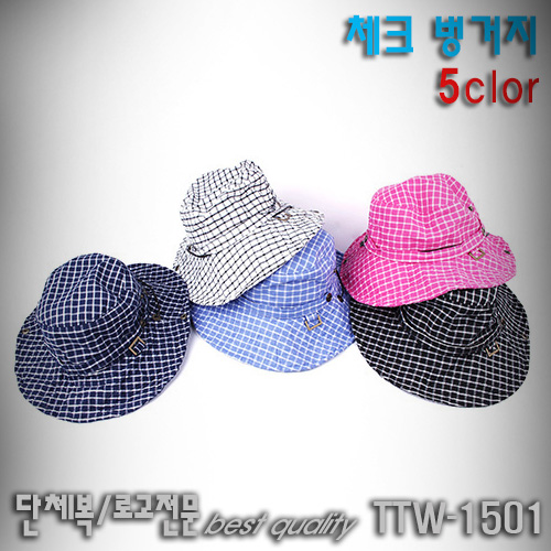 TTW-1501 / 체크 벙거지모자 모자자수 나염프린팅 전사 열스티커가능 미미마크 마크사 자수사