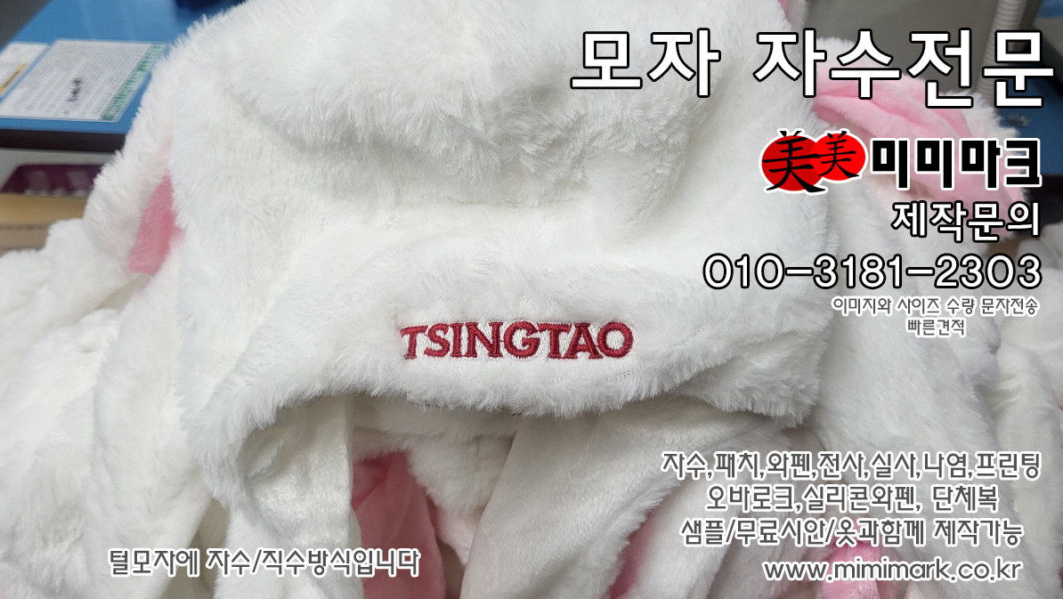 MJ-05/귀달이 털모자자수 제작문의/미미마크/ 모자제작사례
