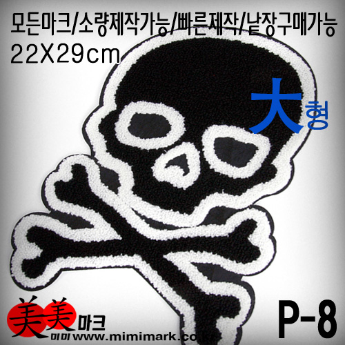 P-8 해골보풀자수 (대형보풀자수) 패치와펜 ,3D패치,전사패치,고무패치,실리콘패치와펜,벨크로패치제작 패치와펜잘만드는집 컴퓨터자수 잘하는집 자수펀칭무료디자인제공, 패치제작 와펜제작 자수패치 홀로그램패치출시 브랜드패치제작 고궐리티패치제작 자수패치업체 자수공장 패치공장 넘버원 미미마크 패치제작시 전문디자이너 무료디자인시안 상담받으세요 제작빠른상담 전화주세요