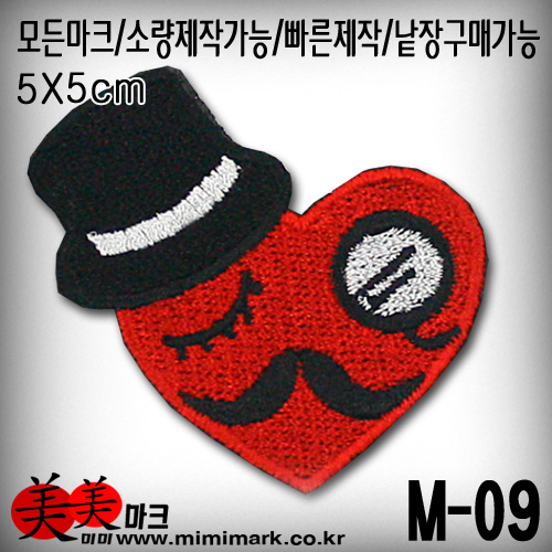 M-09 모자쓴하트 커스텀 자수 벨크로 와펜 패치 빈티지 케릭터자수 잘하는곳 추천 미미마크