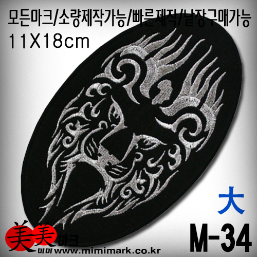 M-34 사자패치/라이온(대형패치) 패치와펜 ,3D패치,전사패치,고무패치,실리콘패치,벨크로패치제작 무료디자인제공, 패치제작 와펜제작 자수패치 벨크로패치제작 미미마크